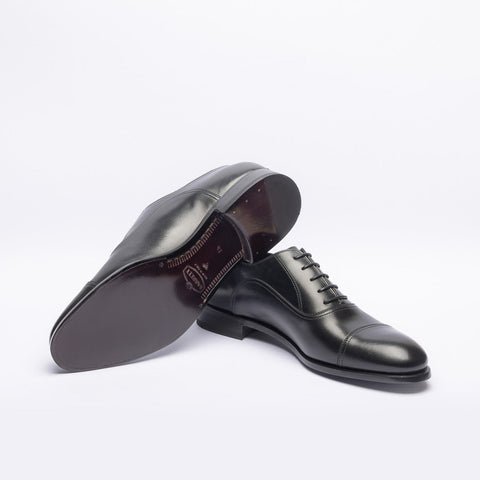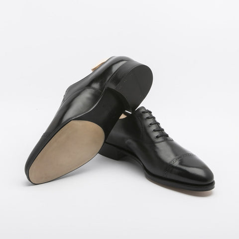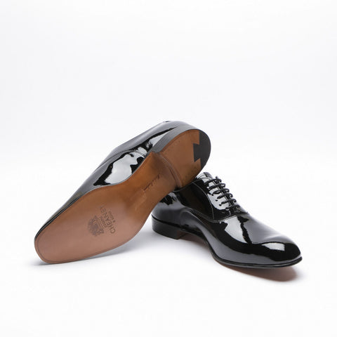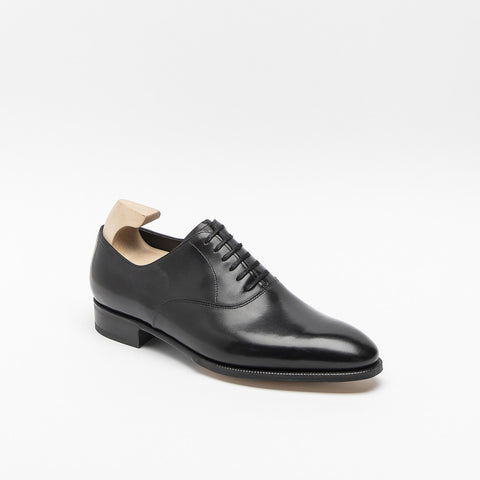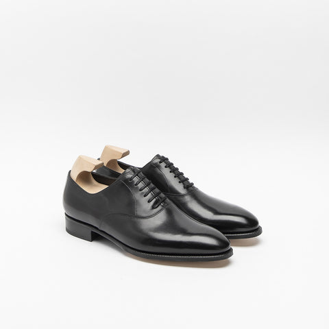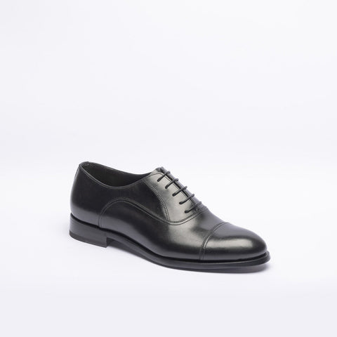 La scarpa Oxford rappresenta il vertice dell'eleganza formale maschile. Caratterizzata dalla chiusura a lacci con sistema "closed lacing" (la linguetta è cucita sotto le alette laterali), l'Oxford da sposo è la scelta per eccellenza per matrimoni tradizionali, cerimonie in tight o morning coat, e tutte le occasioni che richiedono il massimo grado di formalità. Le Oxford in pelle nera liscia sono considerate la quintessenza della scarpa da cerimonia: lineari, sobrie, senza decorazioni superflue, incarnano la filosofia dell'eleganza britannica secondo cui il vero lusso risiede nella semplicità perfettamente eseguita.