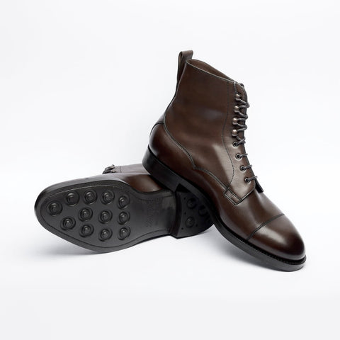 Le suole Commando, Dainite o Vibram, presenti in molti modelli Tricker's, Crockett & Jones e Cheaney Joseph & Sons, offrono trazione superiore su superfici bagnate o ghiacciate e isolamento dal freddo del terreno. Il disegno scolpito del battistrada garantisce sicurezza durante la camminata invernale urbana, rendendo queste polacchine invernali uomo tanto eleganti quanto funzionali.