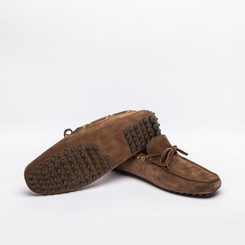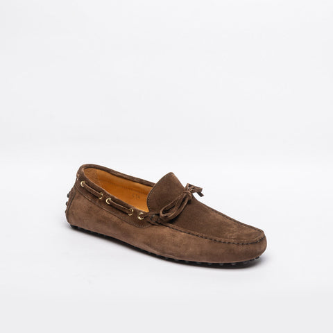 Il mocassino driving nasce con un'esigenza precisa: proteggere la suola e garantire sensibilità sul pedale. La suola è ricoperta di bottoni in gomma che si estendono sul tallone — una soluzione funzionale che è diventata estetica nel tempo. Car Shoe — il brand fondato da Gianni Agnelli — è il riferimento storico di questa tipologia, e la proposta Borghini include il modello KUD006 in un'ampia gamma di materiali: camoscio blu, camoscio mimetico, pelle martellata in diverse tonalità. Una scarpa che funziona al volante ma anche fuori dall'auto.