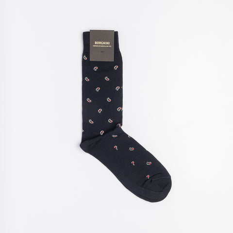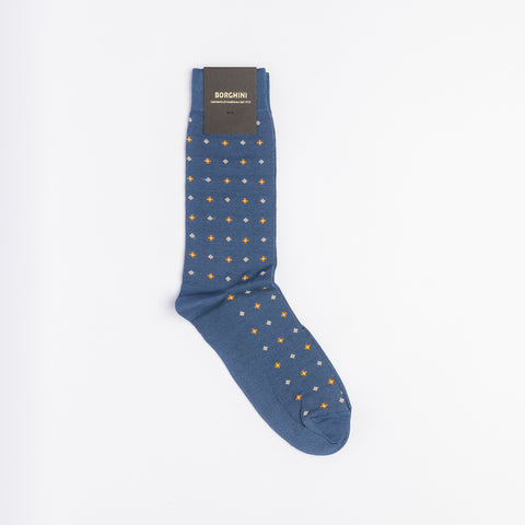 Borghini 891 light blue cotton short socks with orange and white flowers and crosses