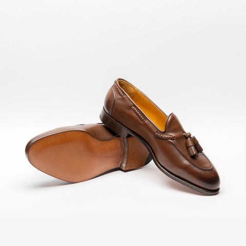 Edward Green Belgravia tasseled moccasin in burgundy horse leather