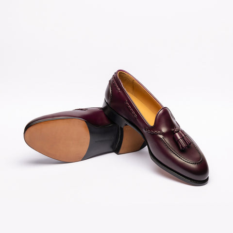 Edward Green Belgravia tasseled moccasin in burgundy horse leather