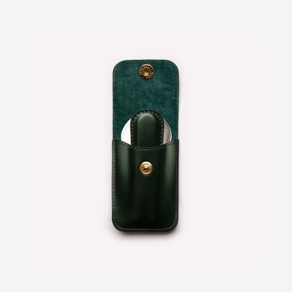 Calzascarpe da viaggio compatto e raffinato della collezione Bridle Hide, realizzato con manico in pelle di alta qualità e custodia in pelle con interno in suede. Il meccanismo pieghevole in metallo permette di inserirlo facilmente in valigia o borsa, rendendo l’atto di indossare le scarpe semplice e senza pieghe.