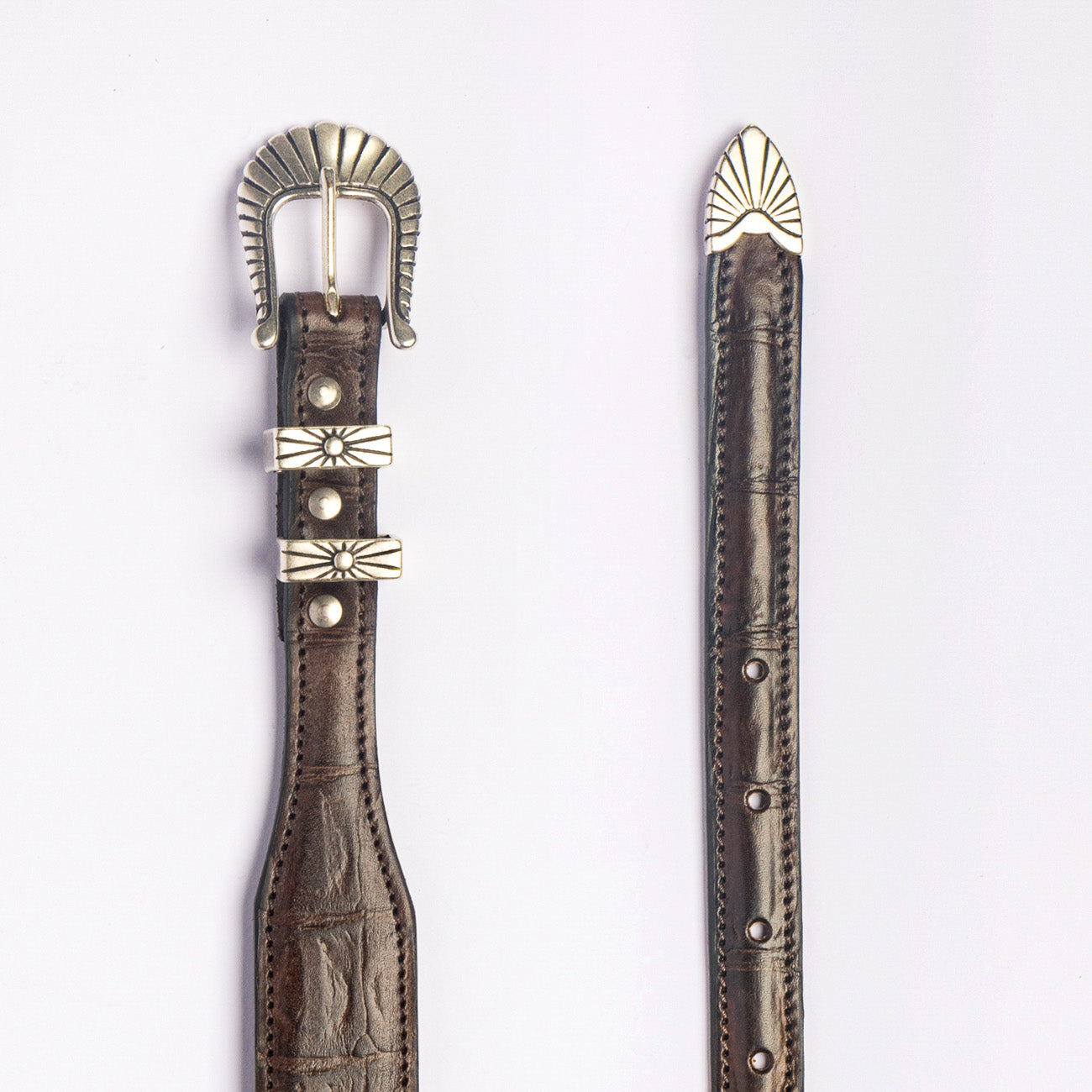 Cintura western Alberto Luti 818/35 in pelle stampa cocco marrone