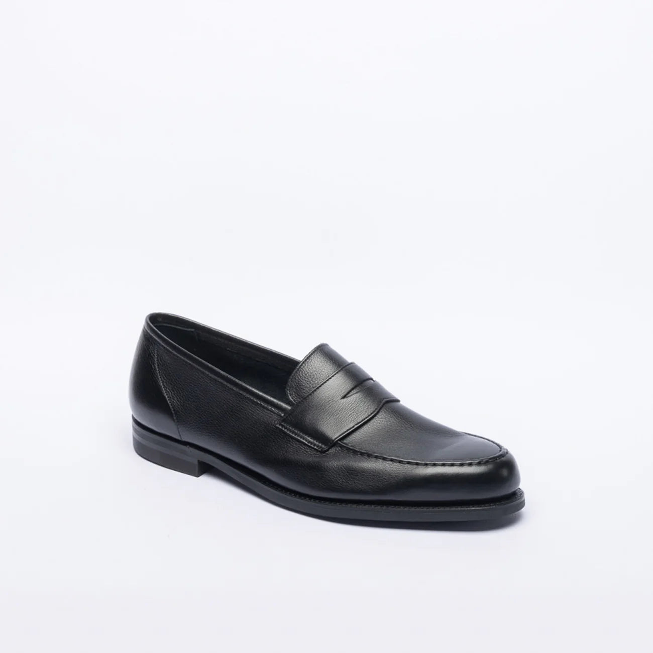 Mocassino penny sfoderato in morbida pelle di vitello nera, soletta interna in pelle, intersuola in cuoio e suola in gomma leggera City Sole.