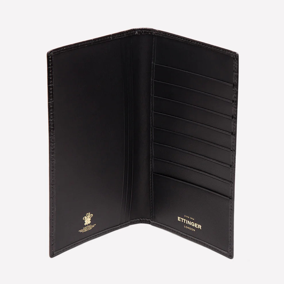 Portafoglio da cappotto Ettinger London in pelle a stampa cocco nera