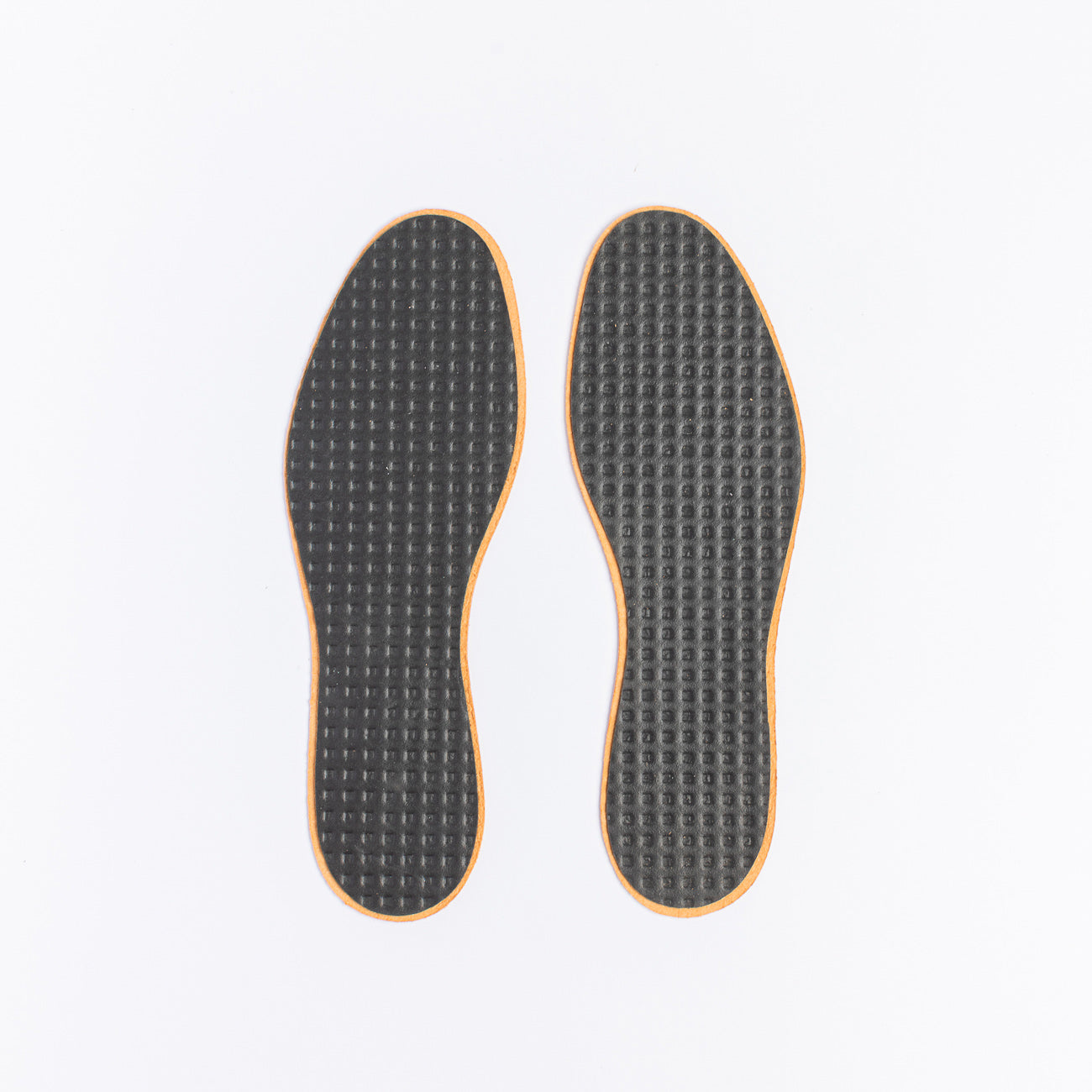 Morbida soletta sottile ed igienica in cuoio con fori sull'avampiede e sul tallone che garantiscono massima traspirabilità, fondo in gomma memory foam.